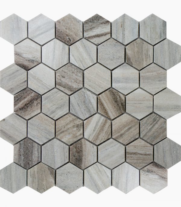 2″ PLATINUM GRAY Polished ‘Hexagon’ Marble MOSAIC