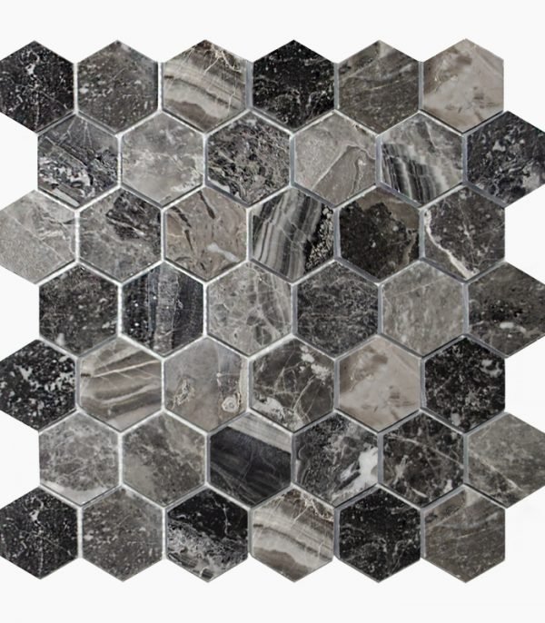 2 inch" PLATINUM GRAY Polished 'Hexagon' Marble MOSAIC