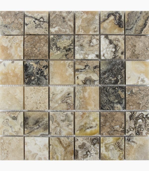 1/2″ Random Block SILVER Tumbled Travertine MOSAIC