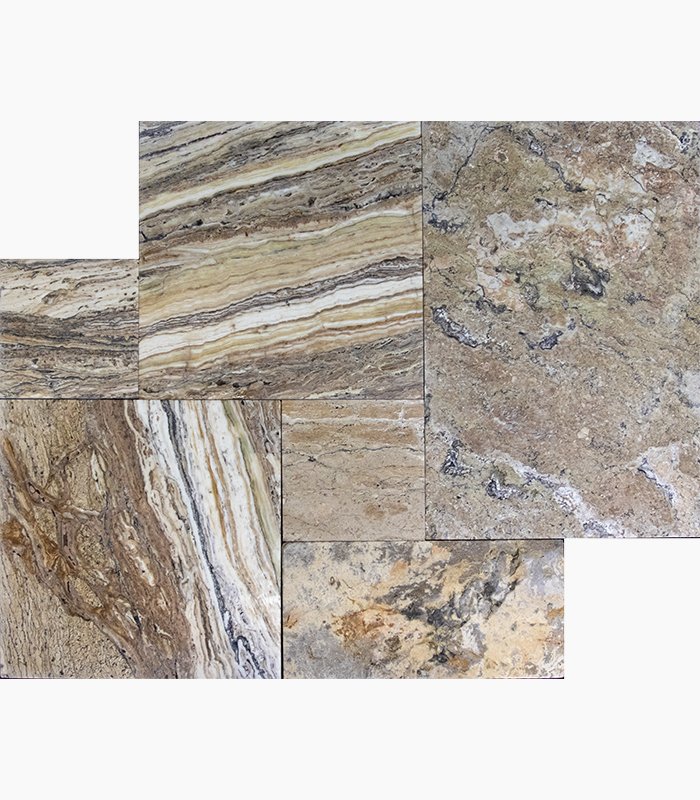 French Pattern ANTIQUE ONYX Premium- SELECT Vein-Cut Tumbled Travertine PAVER