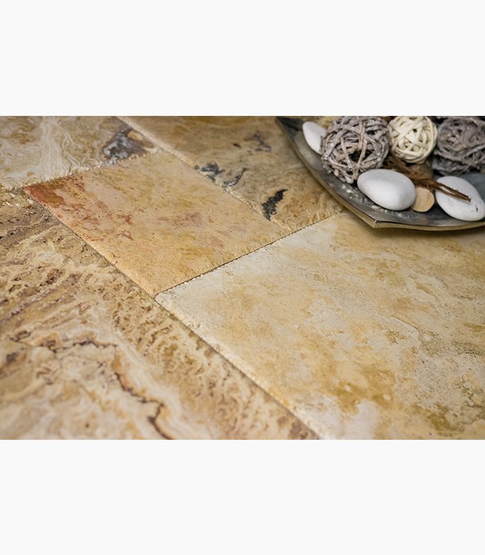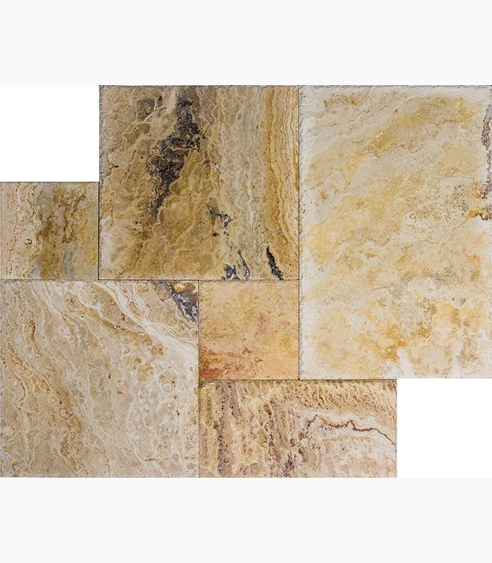 French Pattern AUTUMN BLEND Premium-SELECT Brushed-CHISELED Travertine TILE