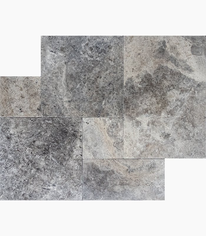 French Pattern SILVER Premium-SELECT Tumbled Travertine TILE